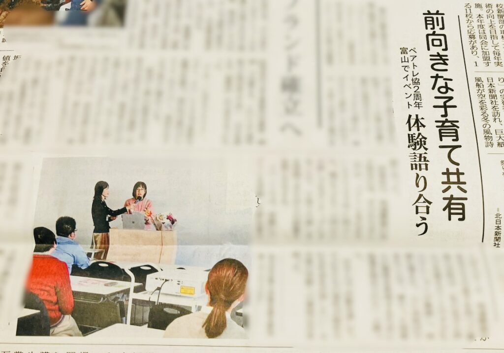 昨年(2025年)12月6日に開催した、日本ペアレントトレーニング子育て支援協会の2周年記念イベントが、富山県を代表する新聞社である北日本新聞(2/3朝刊)に掲載されました。 記事では、ペアレントトレーニングを学ぶ会員がスピーチを行う様子や、子育て...