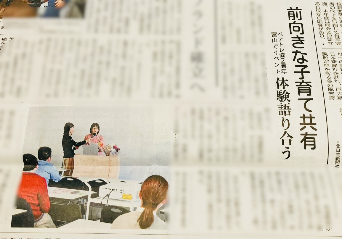 昨年(2025年)12月6日に開催した、日本ペアレントトレーニング子育て支援協会の2周年記念イベントが、富山県を代表する新聞社である北日本新聞(2/3朝刊)に掲載されました。
