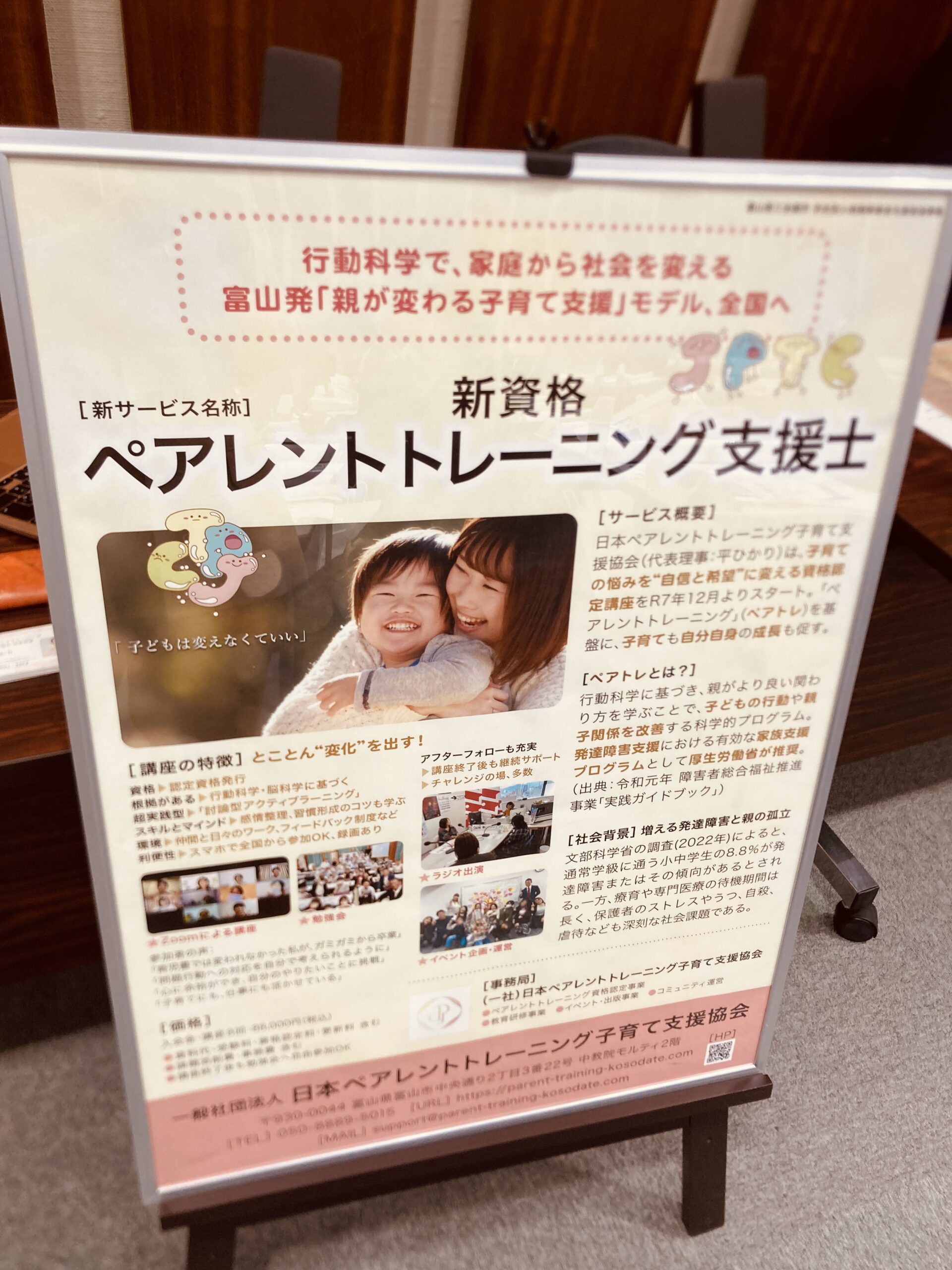 2025年12月11日(木)、富山商工会議所主催「合同プレス記者発表会」にて新資格「ペアレントトレーニング支援士」の紹介をさせていただきました。
